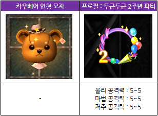 14 | 카우베어 인형 모자 | 1 | 프로필: 두근두근 2주년 파티 | 1 |