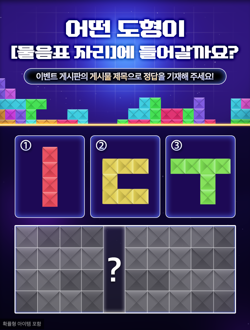이미지 속 빈칸에 알맞은 블록을 골라 넣는 간단한 퍼즐 이벤트입니다!