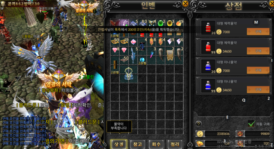 물약이 구매되지 않는 현상으로 인해 불편을 끼쳐드린 점 사과드립니다.