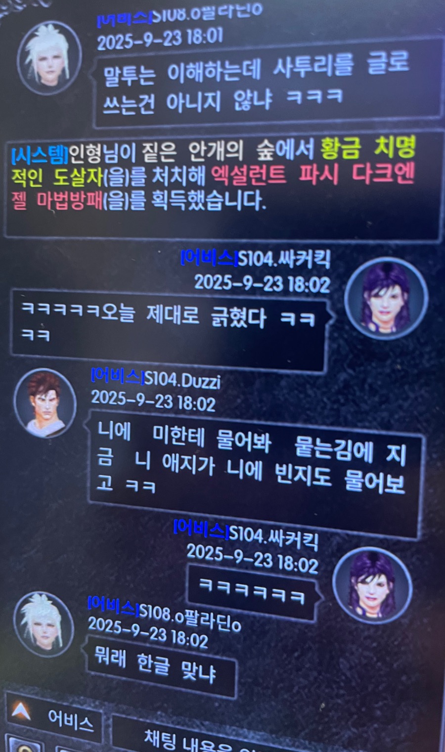 두찌야 너가 성역 사람들 신고 하는 내용도 어비스로 직접 말한거 있는데 올려줄까? 터서버 사람들한테 거짓말좀 그만해라