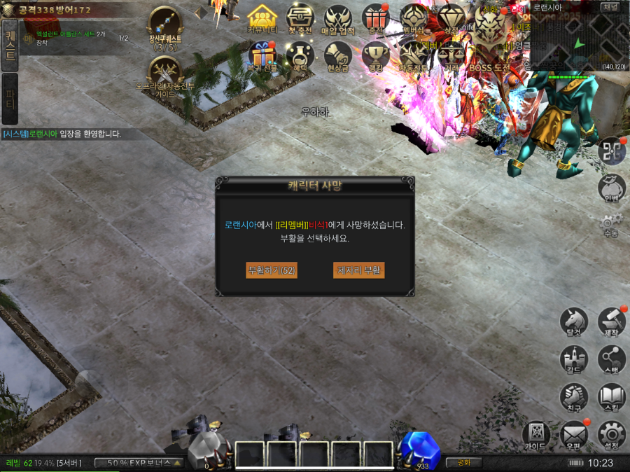 용사님께서는 마을에서 다른 캐릭터로 인해 사망하는 현상을