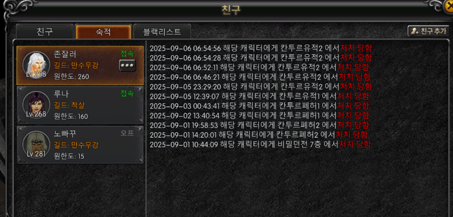 니 부캐 수호자 숙적도 올려야지?ㅋ 그것 포함 7번 넘게 죽은거 인증 못겠지?